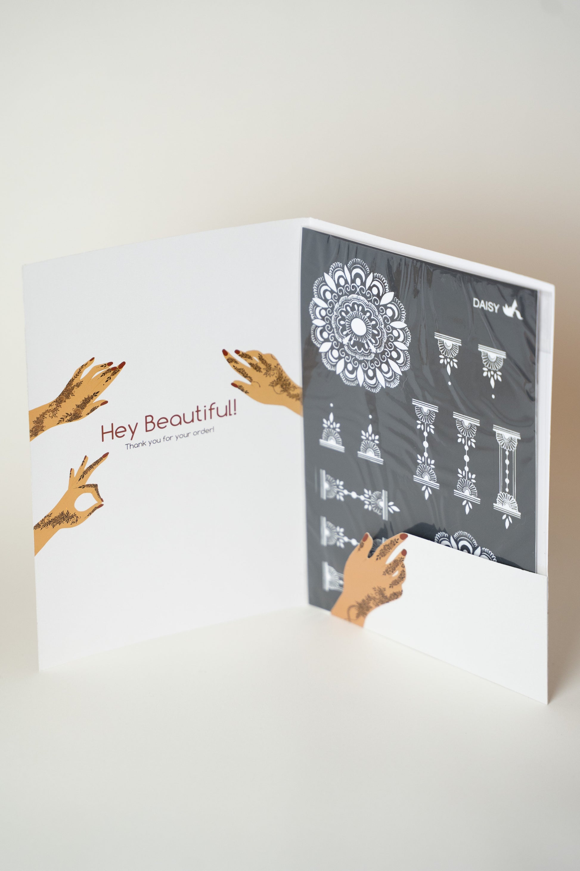 Every product we offer is meticulously hand-drawn by our skilled henna artist and thoughtfully crafted with care, ensuring an exceptional experience for you.