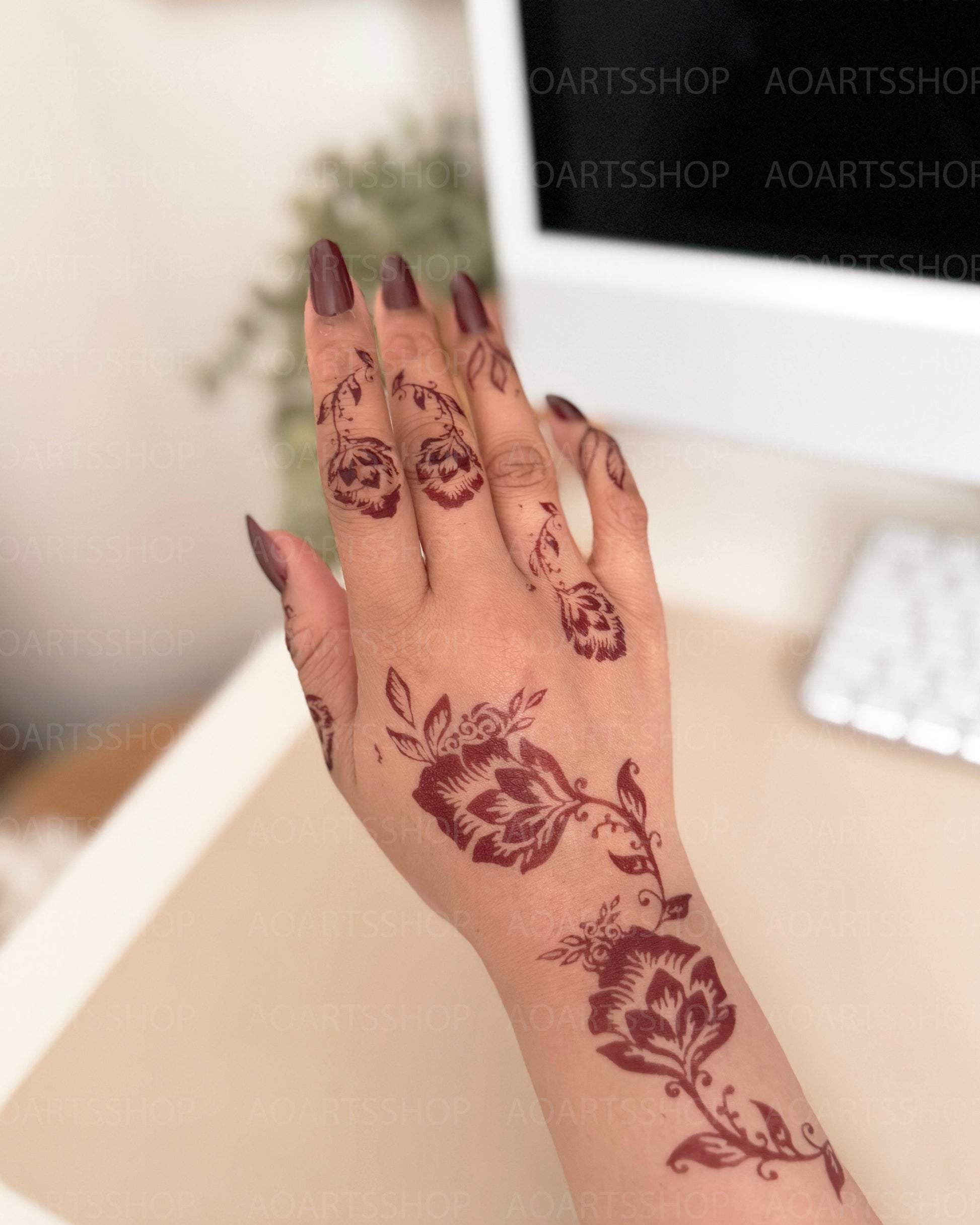 - Your chosen henna stencil (both hands)