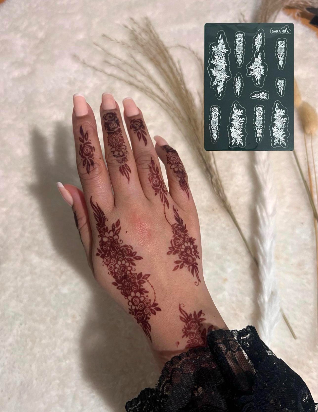 - Your chosen henna stencil (one hand only)