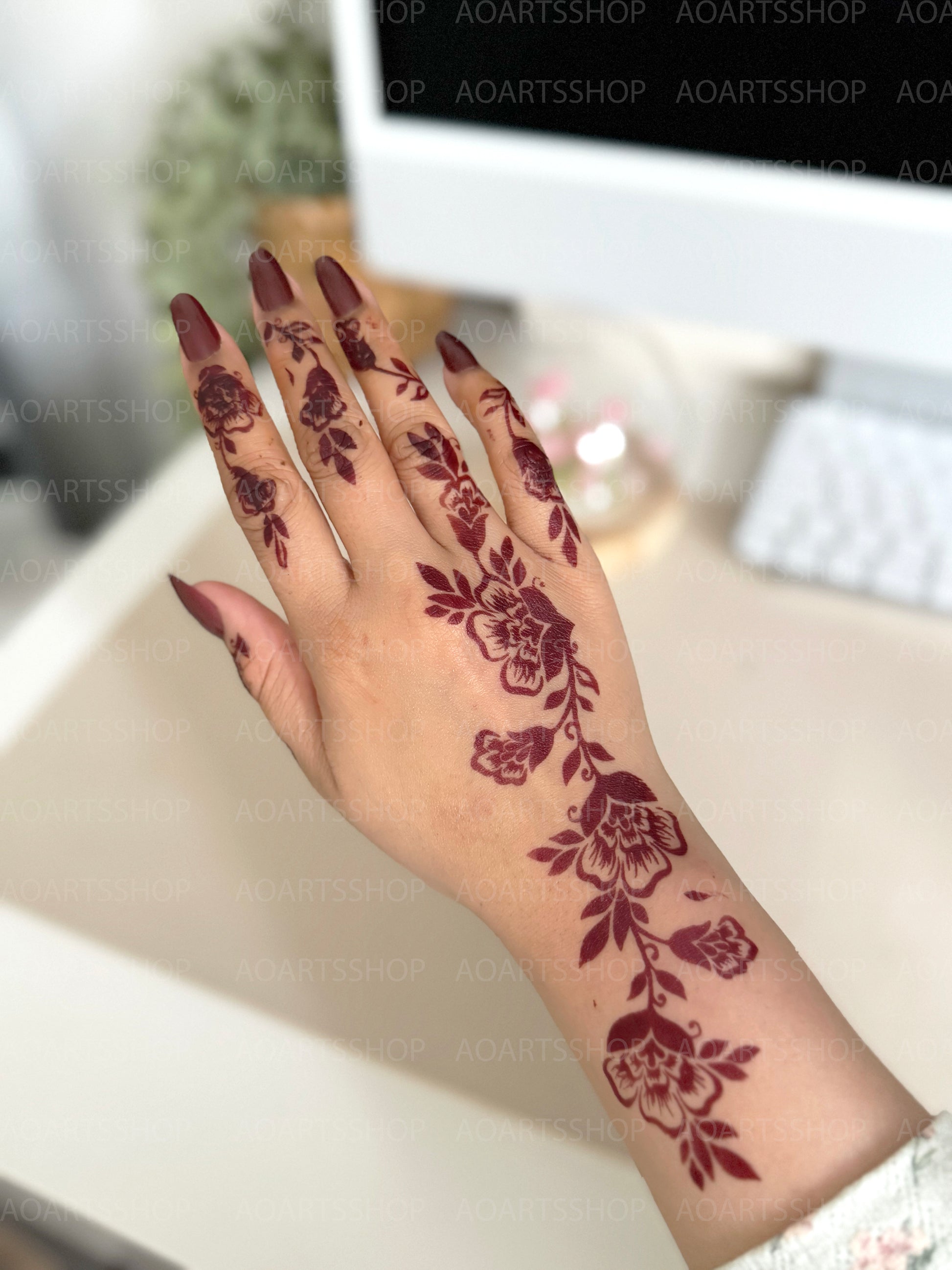 - Your chosen henna stencil (both hands)